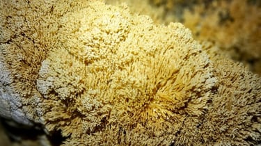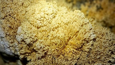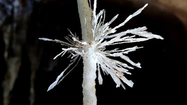 Presentan formas irregulares y ramificadas que recuerdan al coral marino. Se desarrollan a partir de depósitos minerales muy lentos y delicados, creando estructuras pequeñas y complejas que destacan por su aspecto rugoso y detallado.