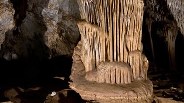 Se forman cuando una estalactita y una estalagmita se unen tras miles de años de crecimiento, creando auténticos pilares naturales que conectan el techo y el suelo de la cueva.