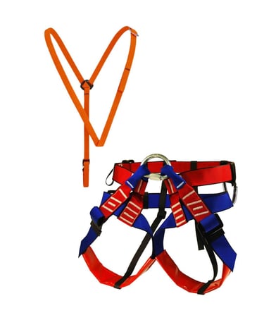 El arnés de espeleología está compuesto por un arnés pélvico y un arnés de pecho, diseñados para trabajar conjuntamente y repartir el peso de forma equilibrada durante la progresión vertical en cuevas. Este conjunto aporta comodidad, estabilidad y seguridad.