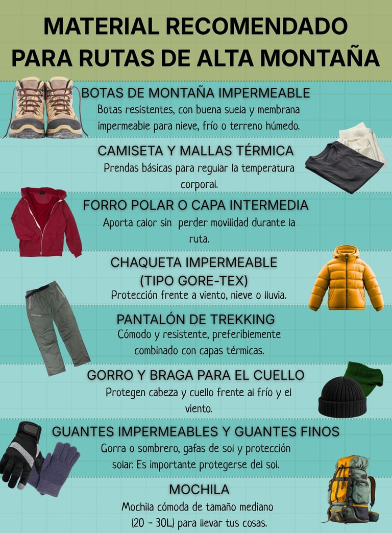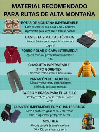 Material técnico incluido para la ruta en alta montaña